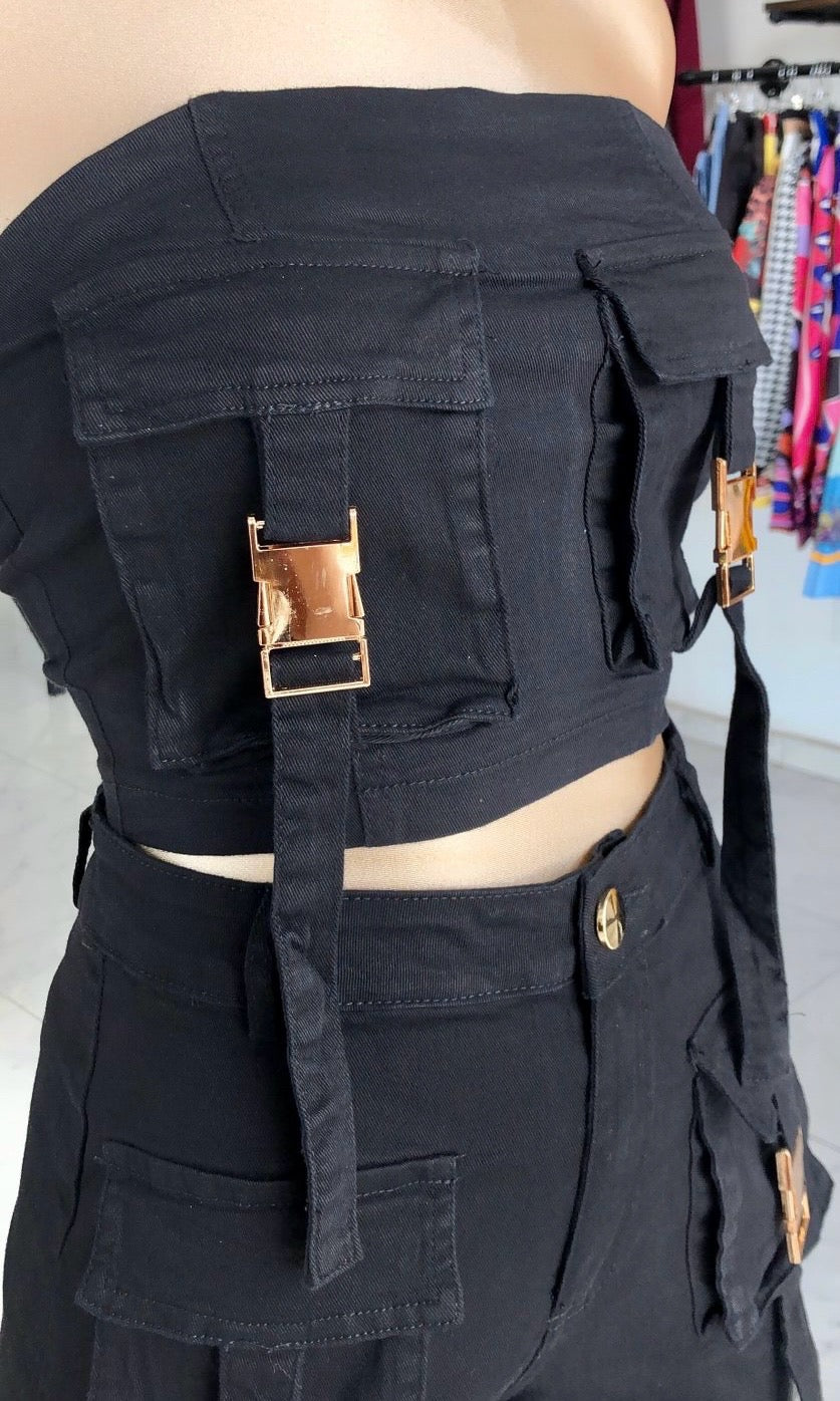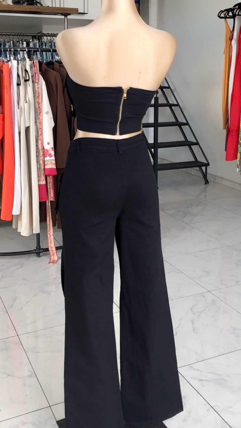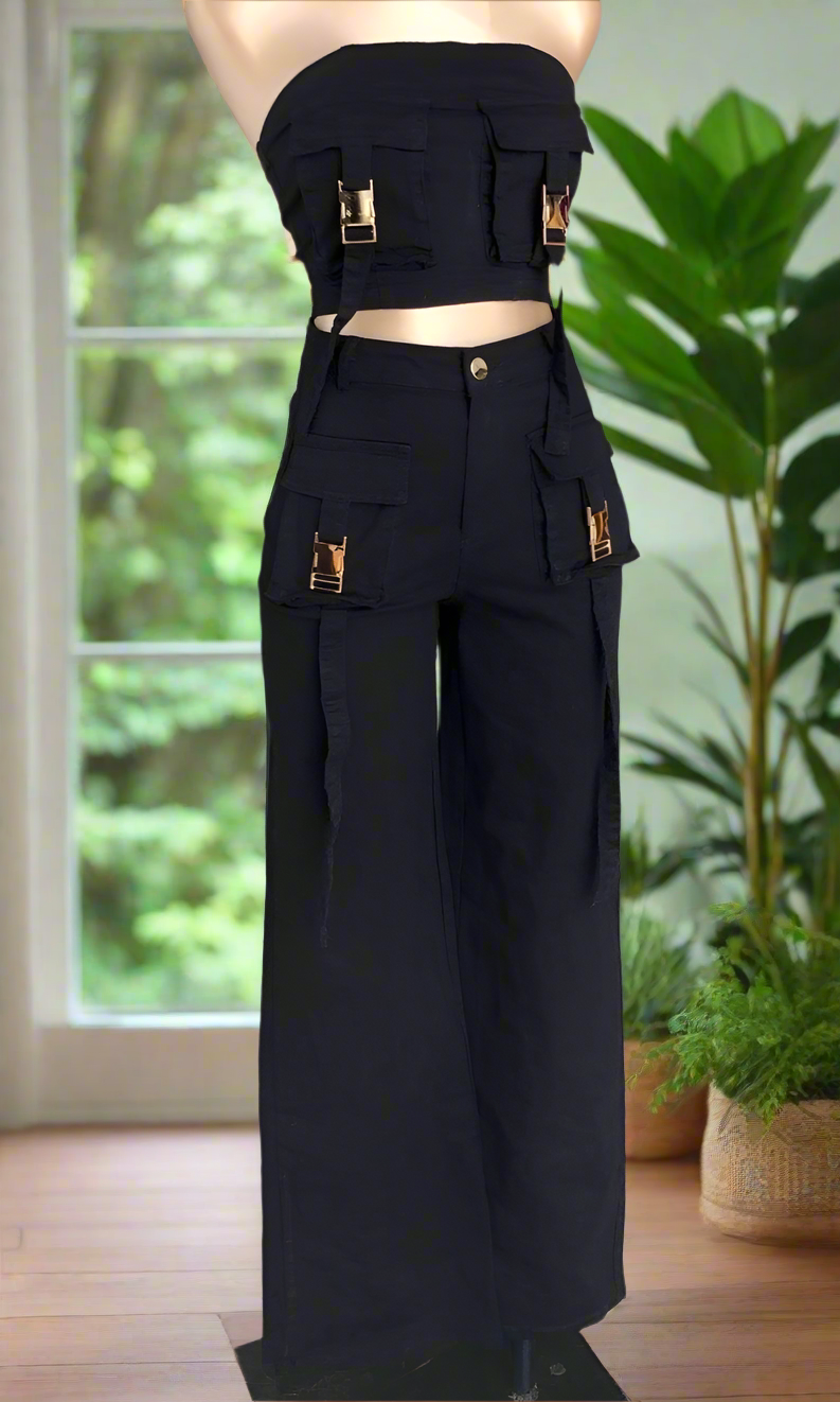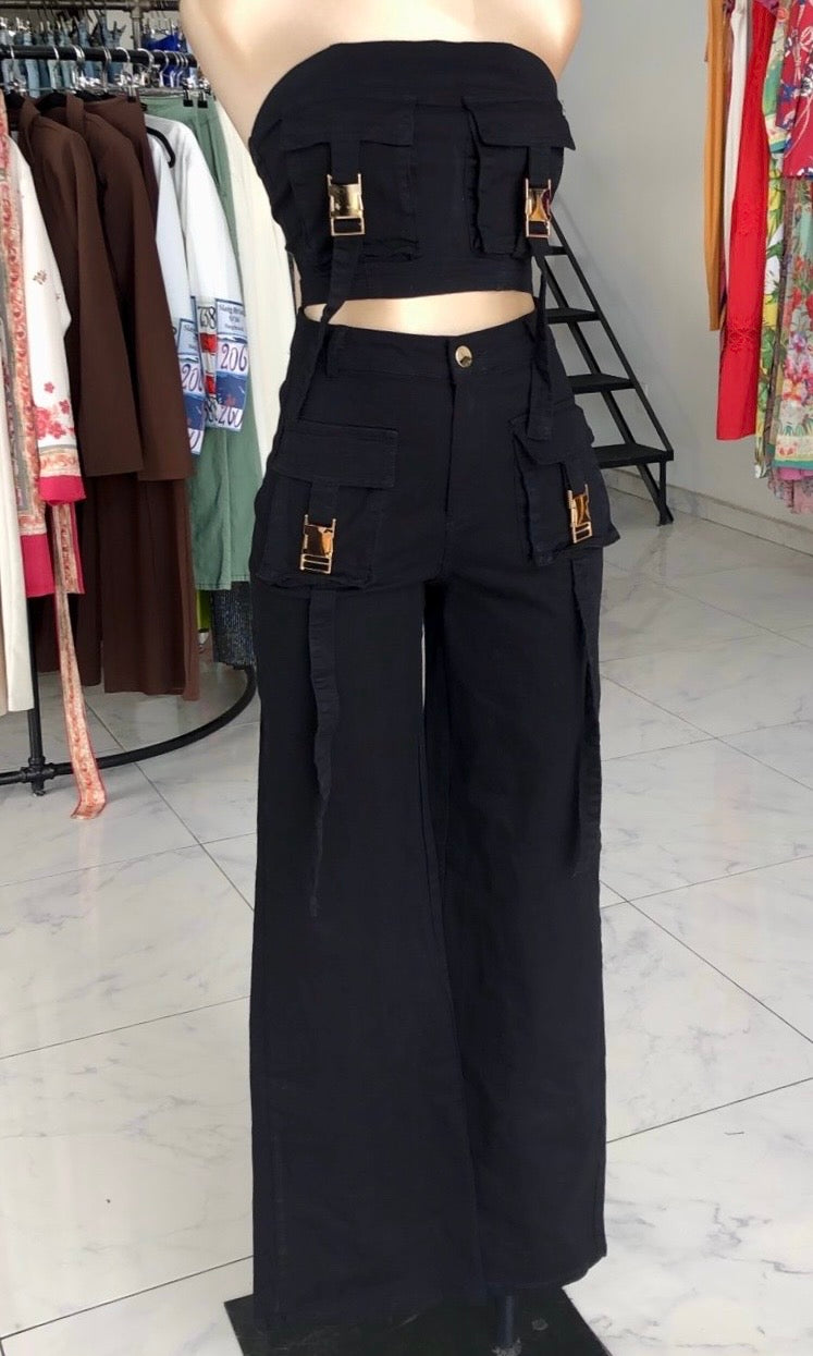 Este conjunto de dos piezas Set Texas es perfecto para un look moderno y a la moda. El top con bolsos al frente y pantalón alto de pierna ancha te dan comodidad y estilo. ¡Ideal para cualquier ocasión!